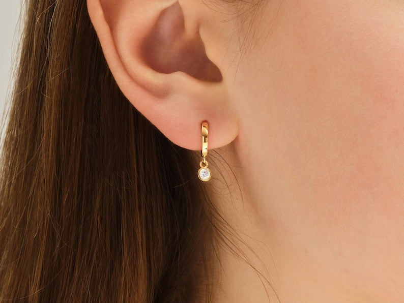 0.10 TCW Round Cut Moissanite Bezel Drop Earrings in Gold