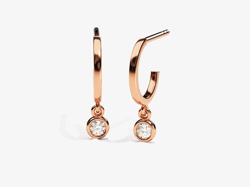 0.10 TCW Round Cut Moissanite Bezel Drop Earrings in Gold 6
