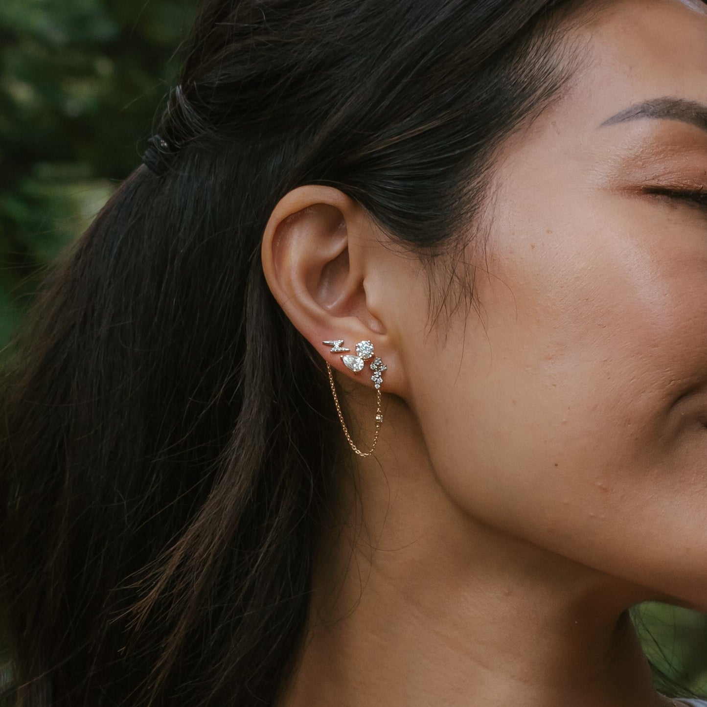 0.28 TCW Round Cut Moissanite Chain Earrings in Gold