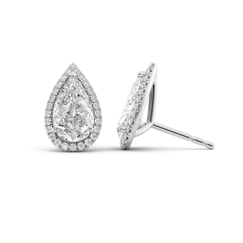 3 TCW Pear Cut Halo Stud Moissanite Earrings