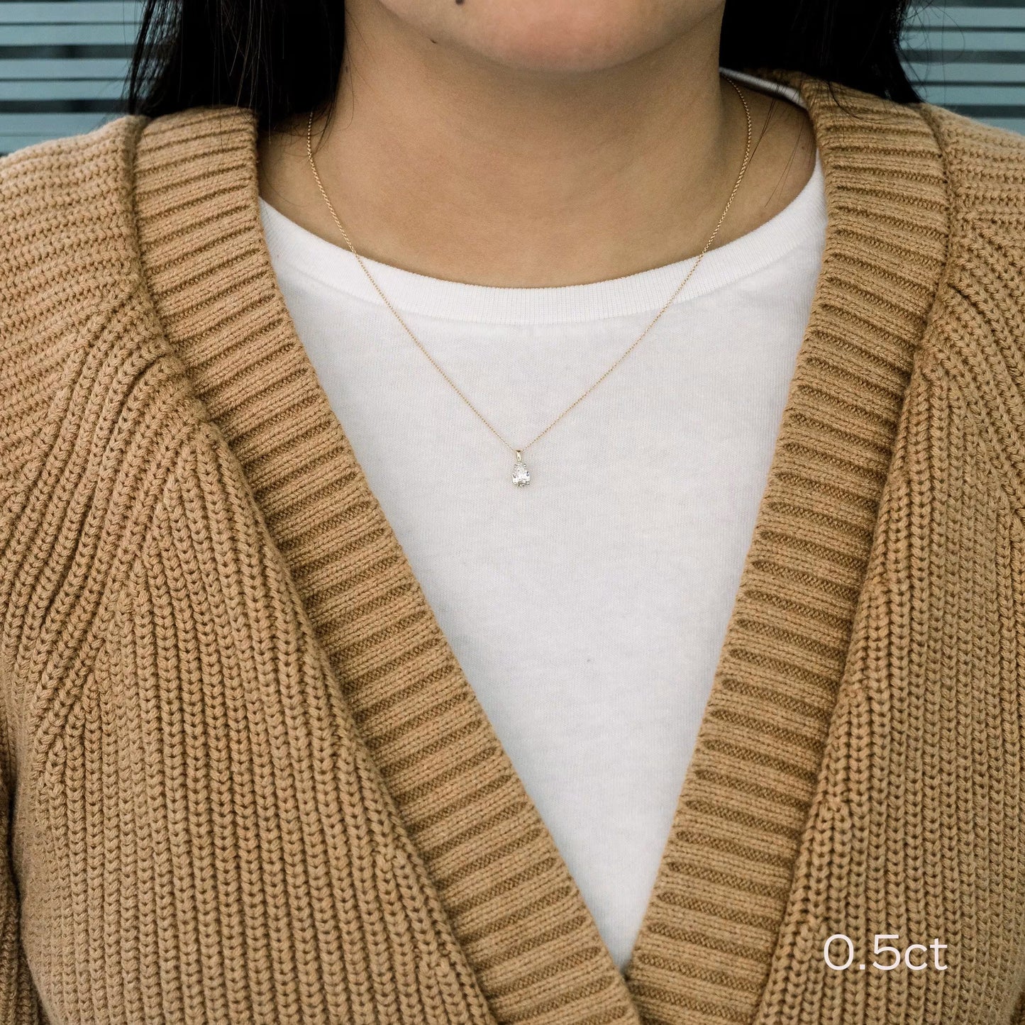 1.0 CT Pear Cut Moissanite Diamond Solitaire Pendant Necklace in Solid Gold