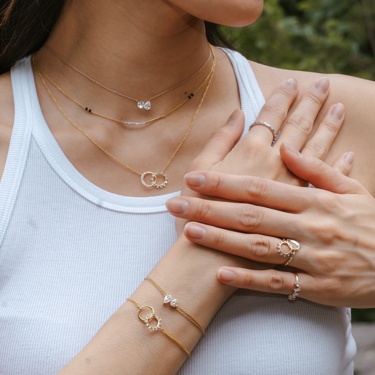 2.0 CT Pear & Round Moissanite Diamond Two Stone Pendant Necklace in Solid Gold 4