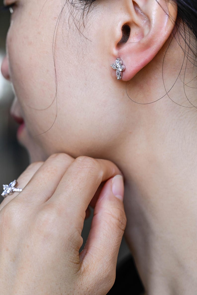 0.20 TCW Round & Marquise Cut Moissanite Stud Earrings in Gold 6