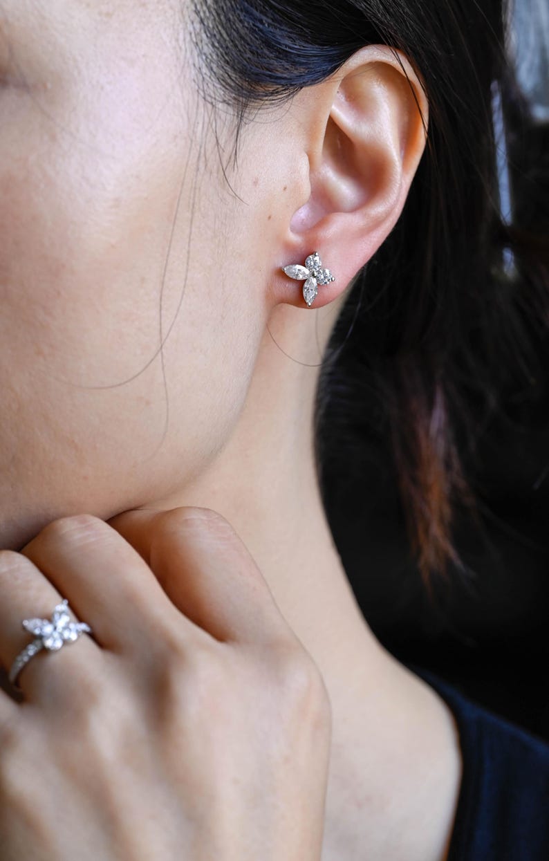 0.20 TCW Round & Marquise Cut Moissanite Stud Earrings in Gold 9