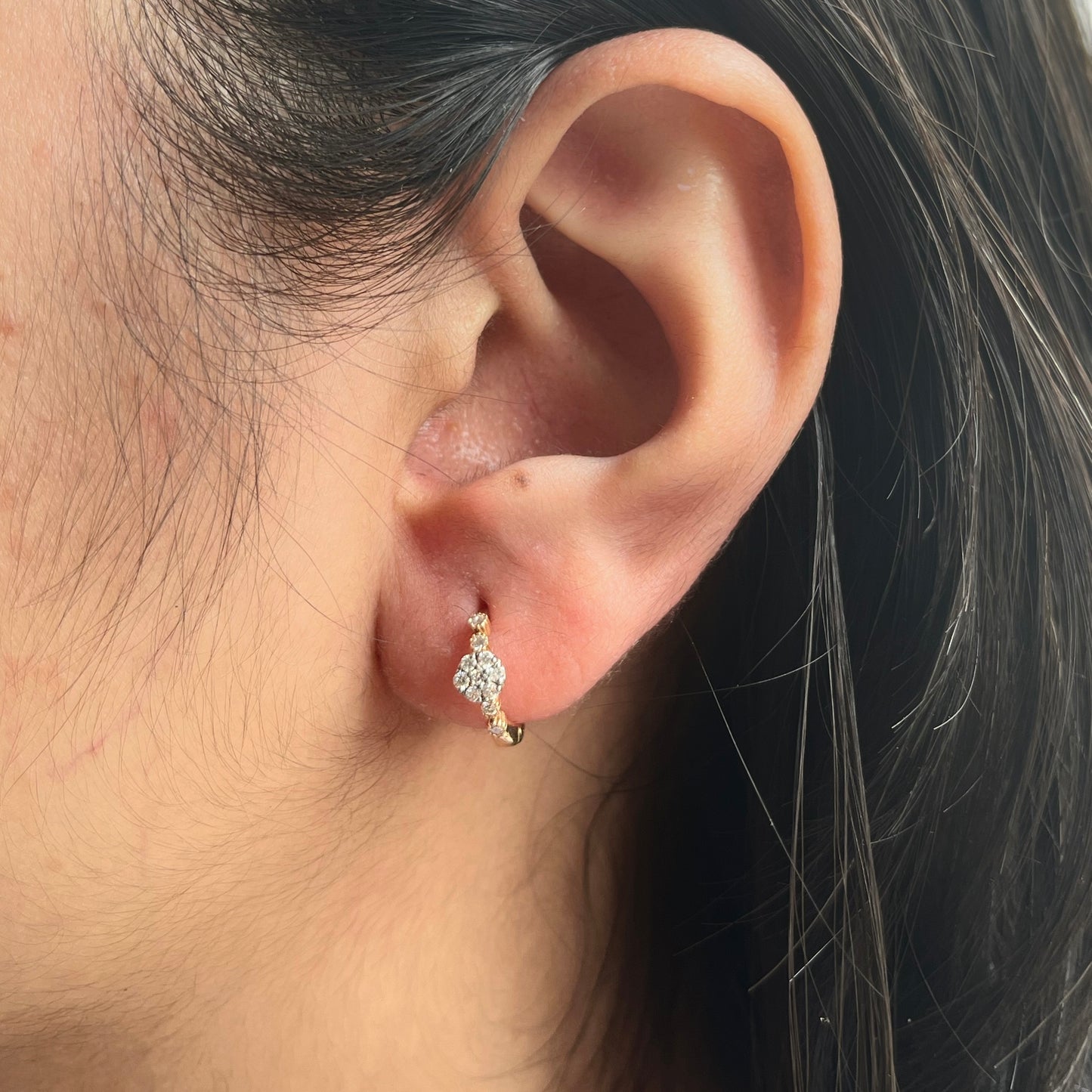0.30 TCW Round Cut Moissanite Flower Huggies Earrings in Gold 7