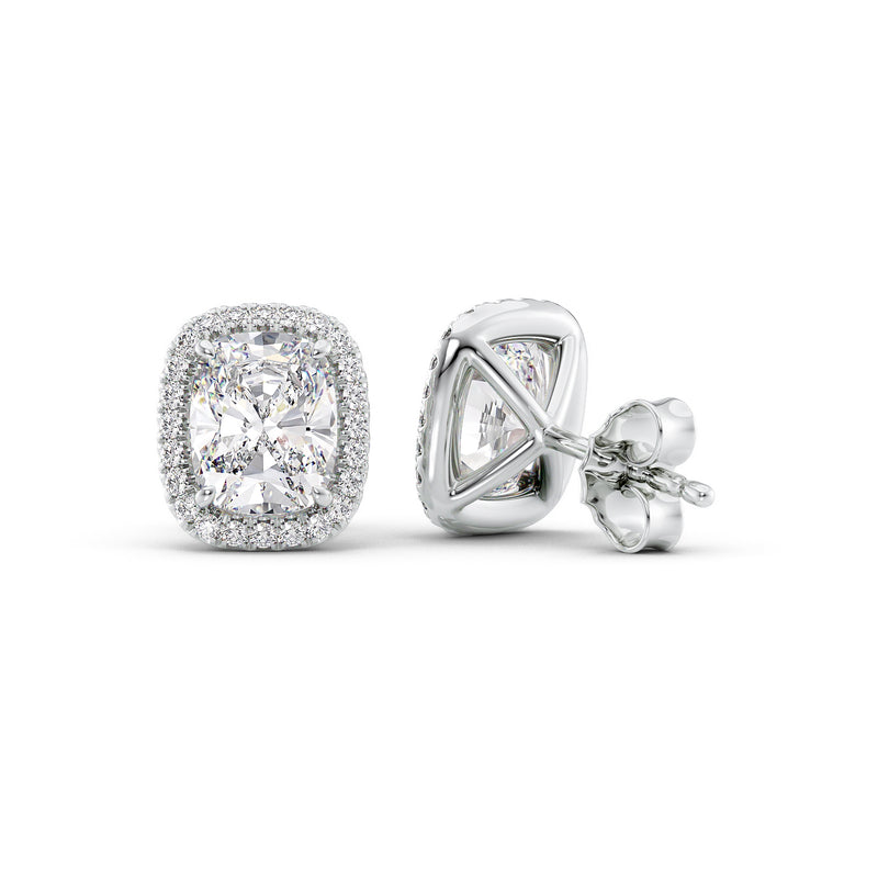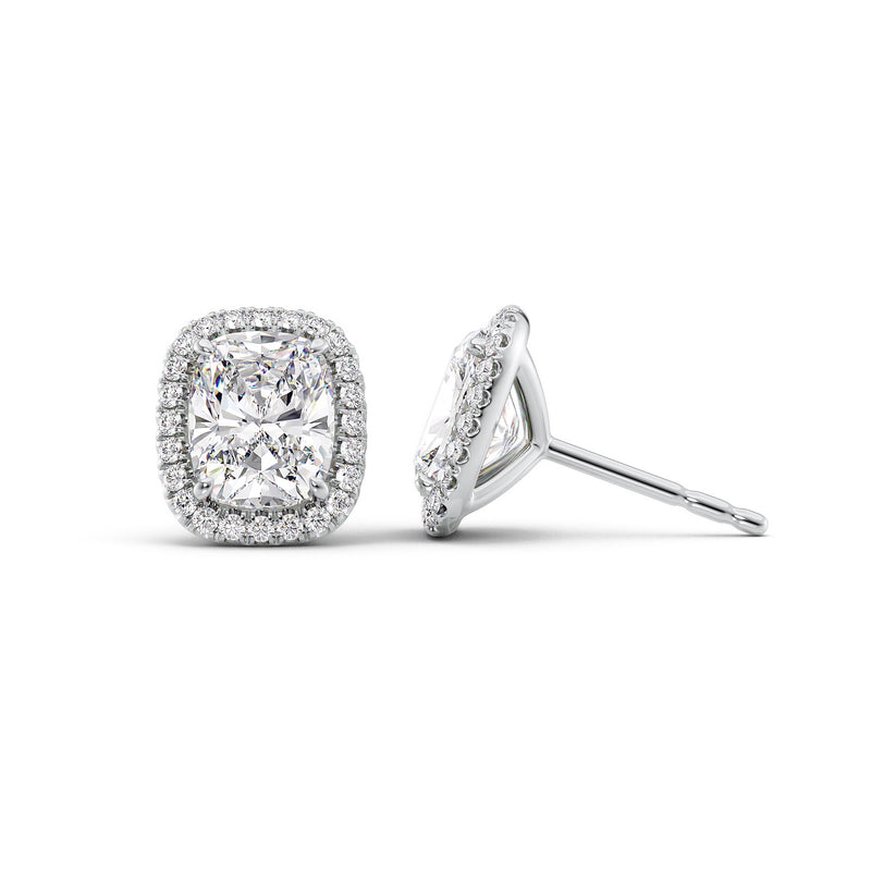 3 TCW Cushion Cut Halo Stud Moissanite Earrings