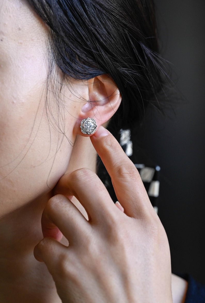 0.50 TCW Round Cut Moissanite Floral Halo Earrings in Gold 8