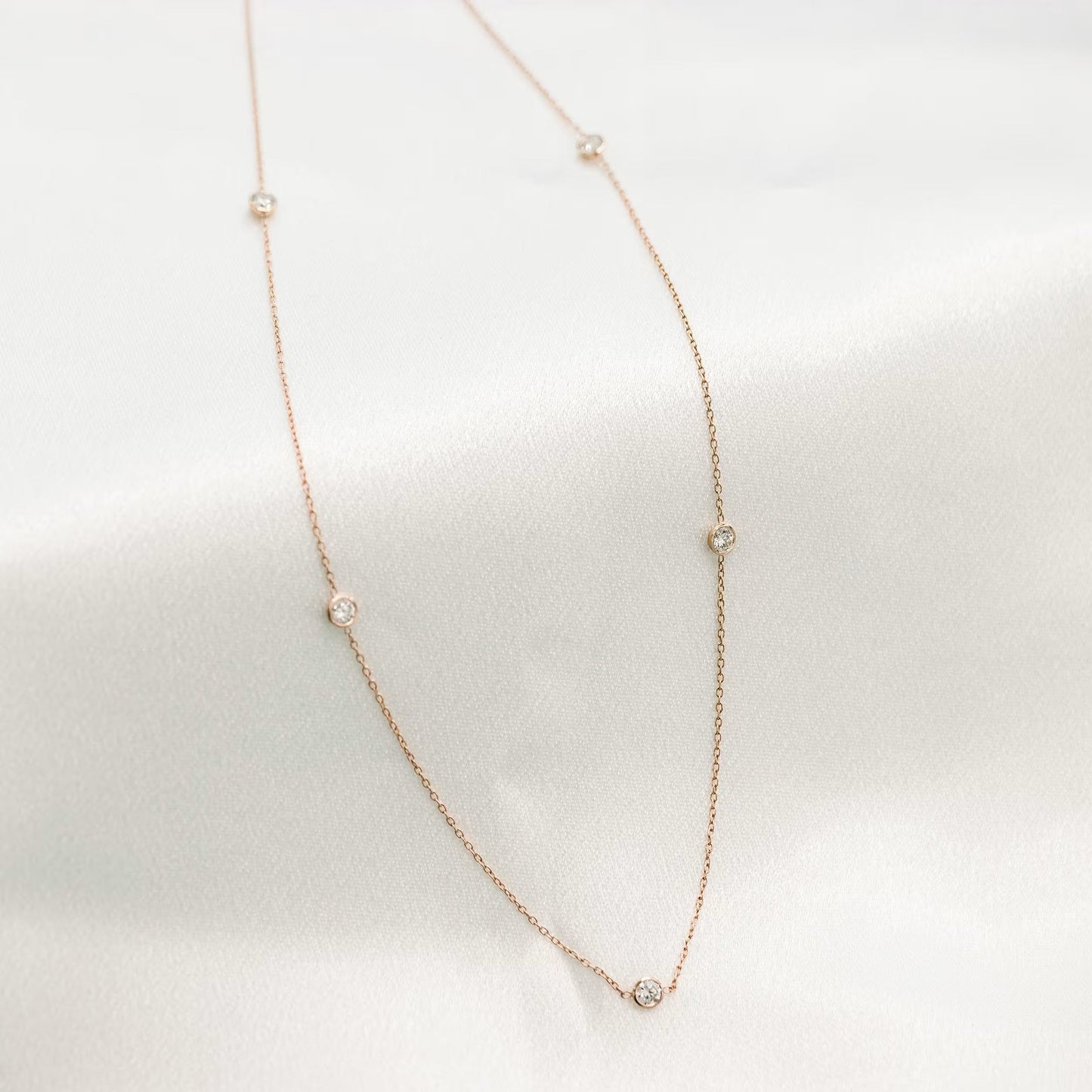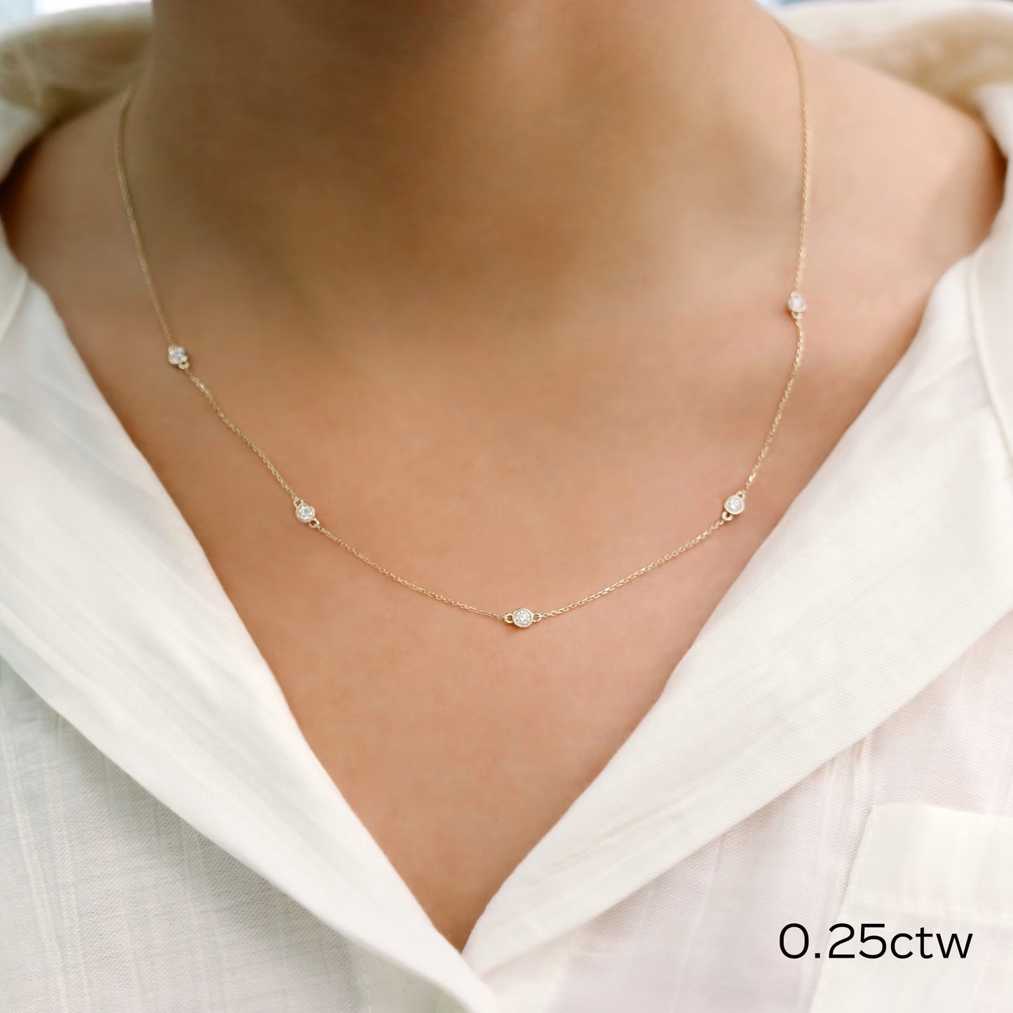 0.40 CT Round Moissanite Diamond Floating Diamond Bezel Necklace in Solid Gold 7