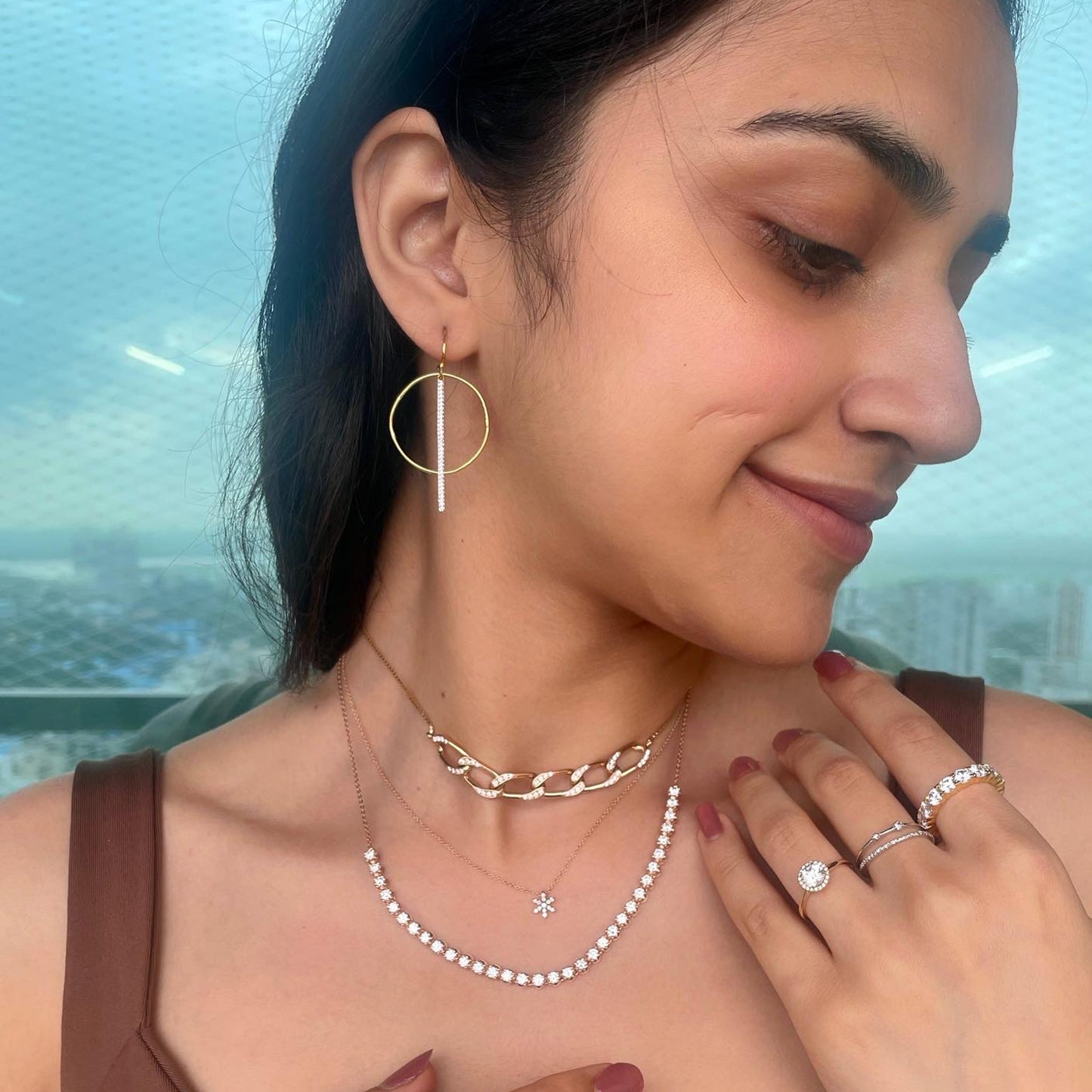 0.70 TCW Round Moissanite Diamond Floral Pendant Necklace in Solid Gold