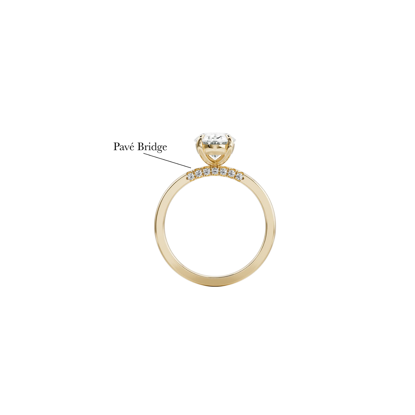 The pavé bridge is set along the bridge of the ring and not visible from the top, this is a bespoke customisation that adds an extra touch of sparkle to the side of the ring.