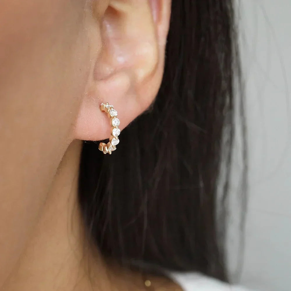 Stunning 0.50 TCW Round Cut Moissanite Huggies Earrings In Gold 4